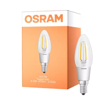Beschrijving Osram Superstar Classic LED E14 Kaars Filament Helder 4W 470lm - 822-827 Dim To Warm | Dimbaar - Vervangt 40W