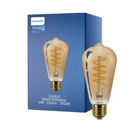 Beschrijving Philips MASTER Value LED Lamp E27 Edison Filament Goud 4W 250lm - 818 Zeer Warm Wit | Dimbaar - Vervangt 25W