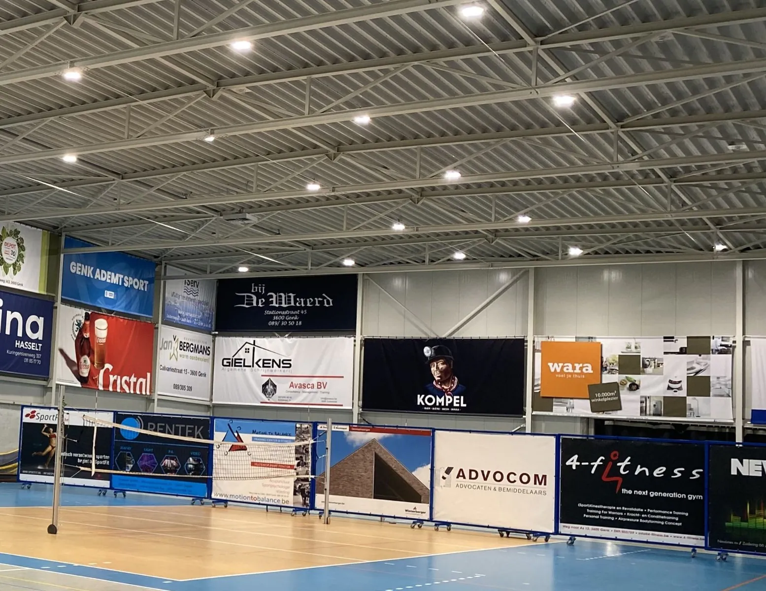 In de volleybal sporthal van KVC Genk is enkel en alleen gebruik gemaakt van onze Noxion Ecowhite LED high-bays met een Cosmicnode sensor module.