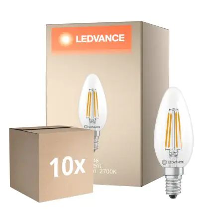 Beschrijving Voordeelpak 10x Ledvance Classic LED E14 Kaars Filament Helder 3.4W 470lm - 827 Zeer Warm Wit | Vervangt 40W