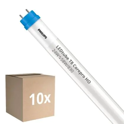 Beschrijving Voordeelpak 10x Philips LED Buis T8 CorePro (EM/Mains) High Output 24W 2500lm - 830 Warm Wit | 150cm - Vervangt 58W